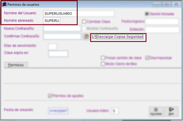Para el uso de descargue de copias, se debe habilitar al usuario mediante el menú Utilidades > Manejo de passwords.